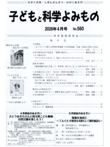 子どもと科学よみもの 2026 年 3月号 目次 12月特別例会「国立天文台 縣秀彦先生と旅する138億光年宇宙の旅」私好みの新刊①『歩くサナギ、うんちの繭』『土と生命の46億年史』12月例会「髙木崇安さんのおはなし『実験・発見 科学は楽しい』」12月の科学あそび分科会「1年…
